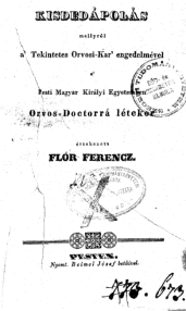 Flór Ferenc orvosdoktori disszertációjának címoldala. URL: http://misc.bibl.u-szeged.hu/id/eprint/45664