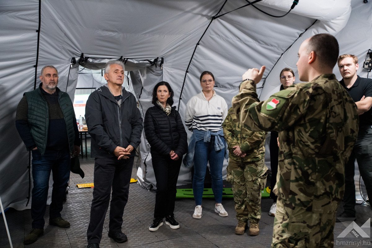 Ezen a napon civil egészségügyi vezetők - főigazgatók, orvosigazgatók – is látogatást tettek a helyszínen, ahol dr. Fejes ezredes vezetésével nyertek bepillantást a katona-egészségügy komplex feladatrendszerébe. A vendégek megismerkedtek a Role 1 és Role 2 működésével, valamint a sebesültek kimenekítését irányító Egészségügyi Koordináló és Kiürítő Részleg részleg (PECC) tevékenységével. Emellett „átélhettek” egy szimulált tömeges sérültellátási helyzetet is, azaz a triázsolástól egészen a betegek fektetőbe történő elhelyezéséig követték nyomon a katona-egészségügyi szakemberek precíz, összehangolt munkáját.