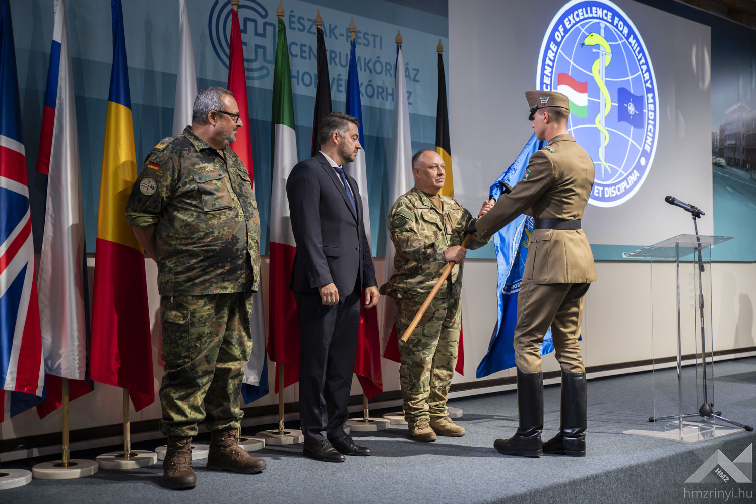 2025. október 27., hétfő 10:29„Megtartani a jót, felismerni a jobbat és törekedni a legjobbra” – e gondolat szellemében vette át a budapesti székhelyű NATO Katona-egészségügyi Kiválósági Központjának vezetését dr. Jens Diehm dandártábornok a parancsnoki pozícióból leköszönő dr. Fazekas László ezredestől. A parancsnoki átadás-átvételi ceremóniát az Észak-Pesti Centrumkórház-Honvédkórház dísztermében tartották, október 22-én.