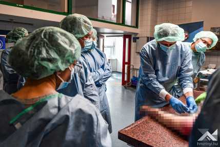 Szerző: Bányász Eszter | Fotó: Rácz Tünde |  2024. április 29., hétfő 8:22„A képzés egyaránt szól orvosoknak és szakdolgozóknak, hiszen a sérültellátás egy rendkívül összetett csapatmunka” – hangsúlyozta dr. Vekszler Péter ezredes, az MH Egészségügyi Központ nemzetközi ügyekért felelős parancsnokhelyettese az alakulat Semmelweis Egyetemmel közösen szervezett, kétnapos mellkaspunkció és mellűri drainage tanfolyama kapcsán.