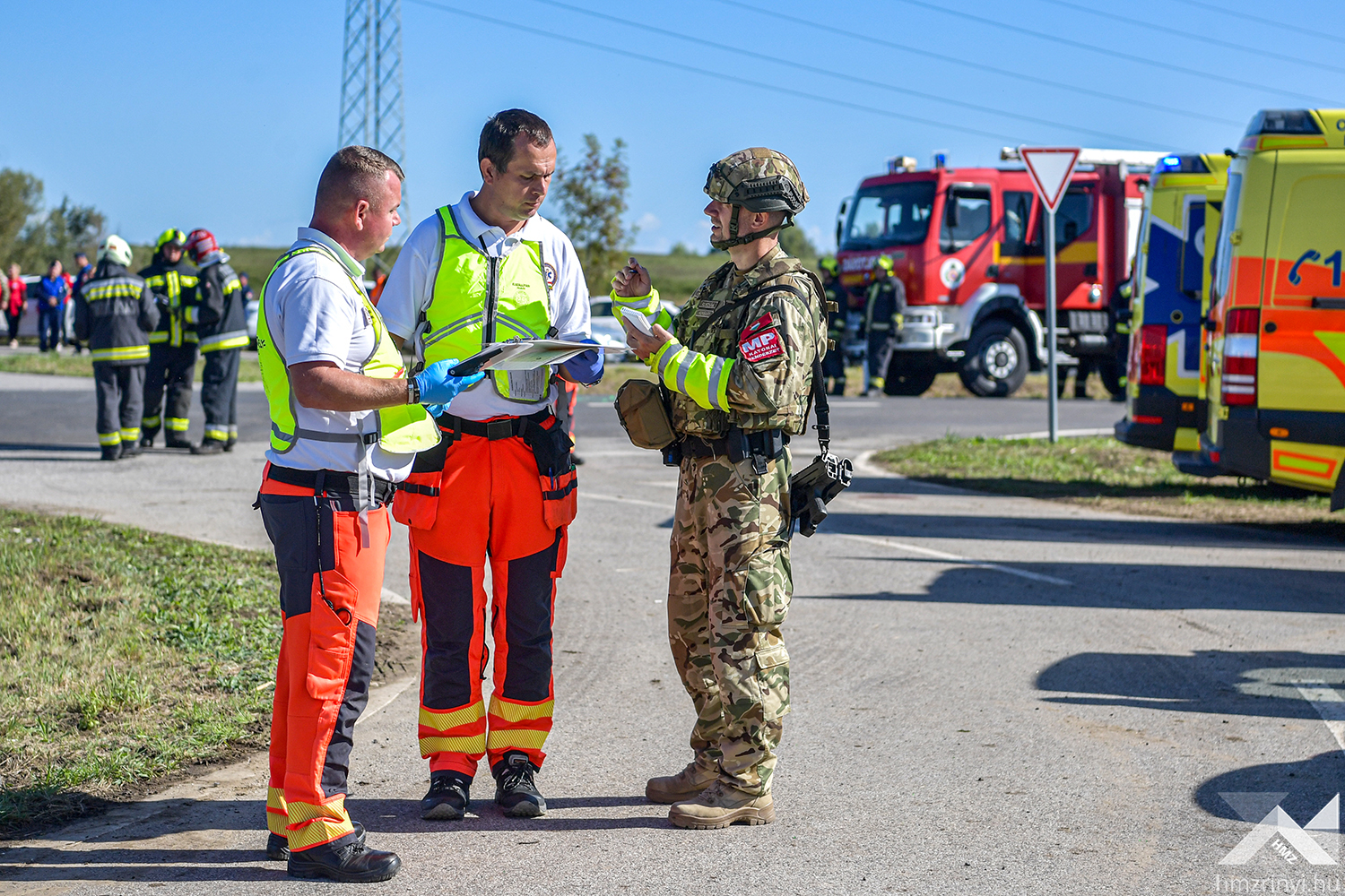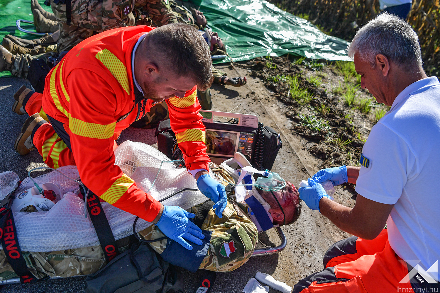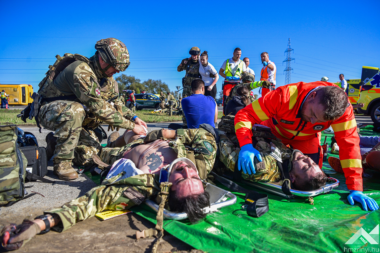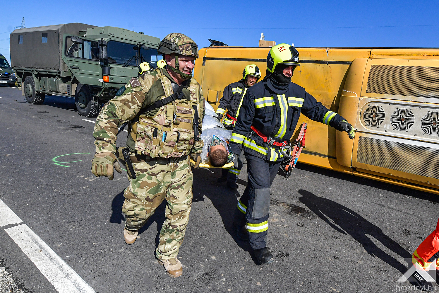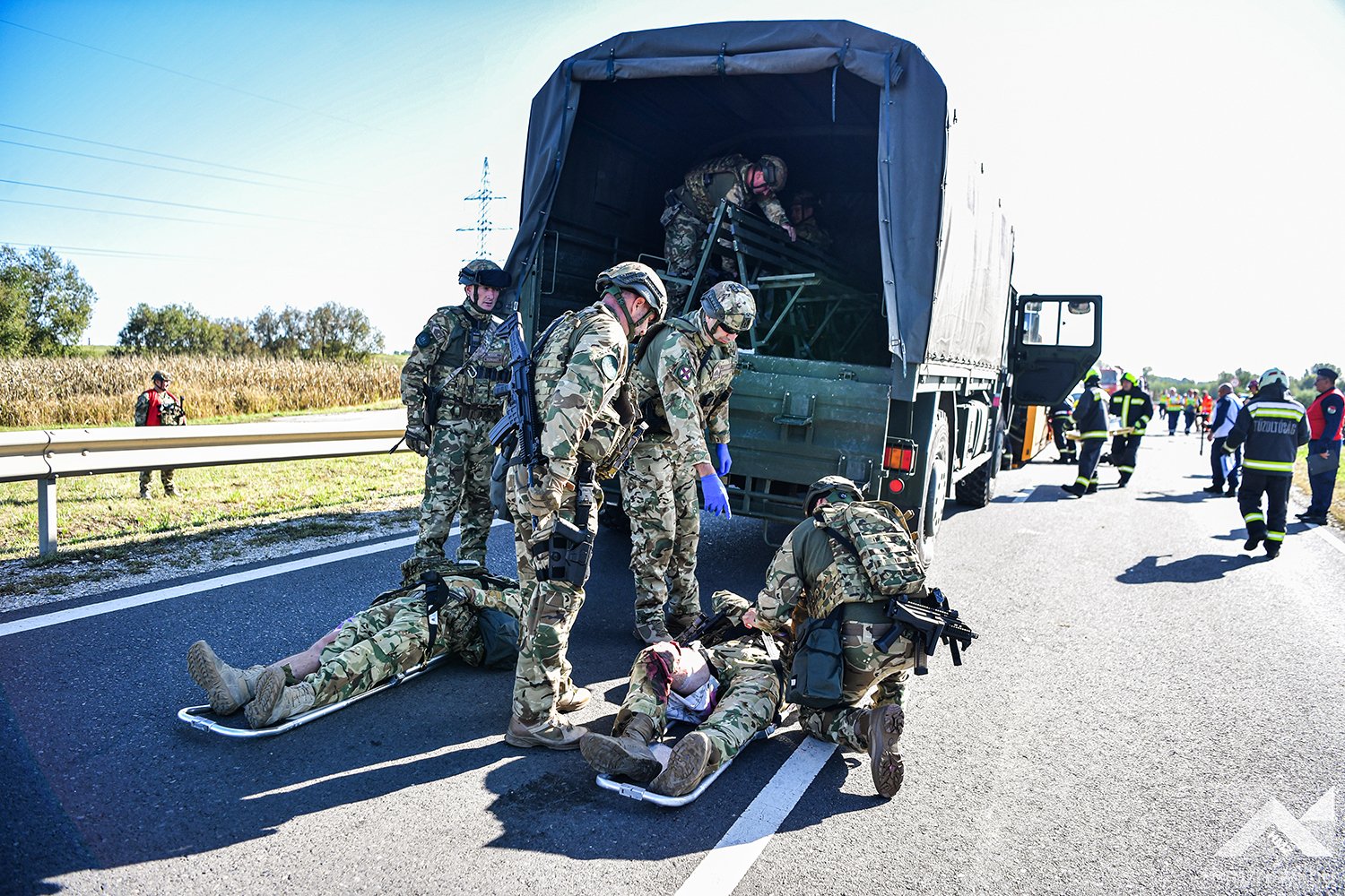 A szimulált balesetet követő első mozzanatként az MH Egészségügyi Központ egészségügyi katonái elkezdték a betegek triázsolását, majd kijelölték a könnyű sérültek ellátására szolgáló helyet. Az ő ellátásukat a harctéri elsősegélynyújtó képzéssel rendelkező katonák végezték, így az egészségügyi állomány a súlyos és életveszélyes sérüléseket „szenvedettek” ellátására fókuszálhattak. A speciális helyzet minden érintett szakterületet megmozgatott, hiszen a gyakorlat forgatókönyve szerinti az imitált baleset azonnali környezeti és közbiztonsági kockázatot teremtett. Az Országos Mentőszolgálat megérkezése után a mentők átvették a sérülteket, miközben a Belügyminisztérium Katasztrófavédelmi Főigazgatóság szakemberei elkezdték a kigyulladt gépjármű oltását és a sérültek kimenekítését a roncsok közül. Mindeközben a Rendőrség biztosította a területet, az Országos Vízügyi Főigazgatóság szakemberei pedig a környezeti károkat hárították el.