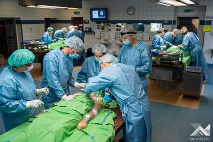 Szerző: Navarrai Mészáros Márton | Fotó: Schöff Gergely |  2024. május 17., péntek 14:54Praktizáló civil és katonaorvosok, valamint műtéti szakasszisztensek nemzetközi csoportja vett részt az „Advanced Surgical Skills for Exposure in Trauma – Plus” (ASSET Plus) elnevezésű, harctéri tapasztalatokon alapuló sebészeti képzésen Budapesten, amelyet a Semmelweis Egyetem Patológiai, Igazságügyi és Biztosítási Orvostani Intézetében rendeztek meg május 7-én és 8-án.