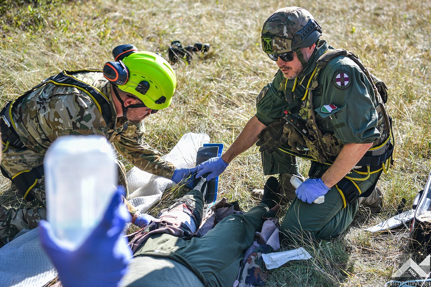 „Feltételezhető zavarás miatt nincs GPS-jel, a pontos kárhelyszínt a H145M típusú helikopter kutató-mentő állománya keresi. Mivel a sérült nem bír talpra állni, az adott ponton kell őt megfelelő eszközök híján ellátni. Vákuumsínt helyeznek a végtagra, hordágyra teszik és helikopterrel elszállítják” – ismertette a helyzetet az MH Egészségügyi Központ állományában szolgáló Bődi Norbert százados, a szolnoki dandár Egészségügyi Központjának parancsnoka.