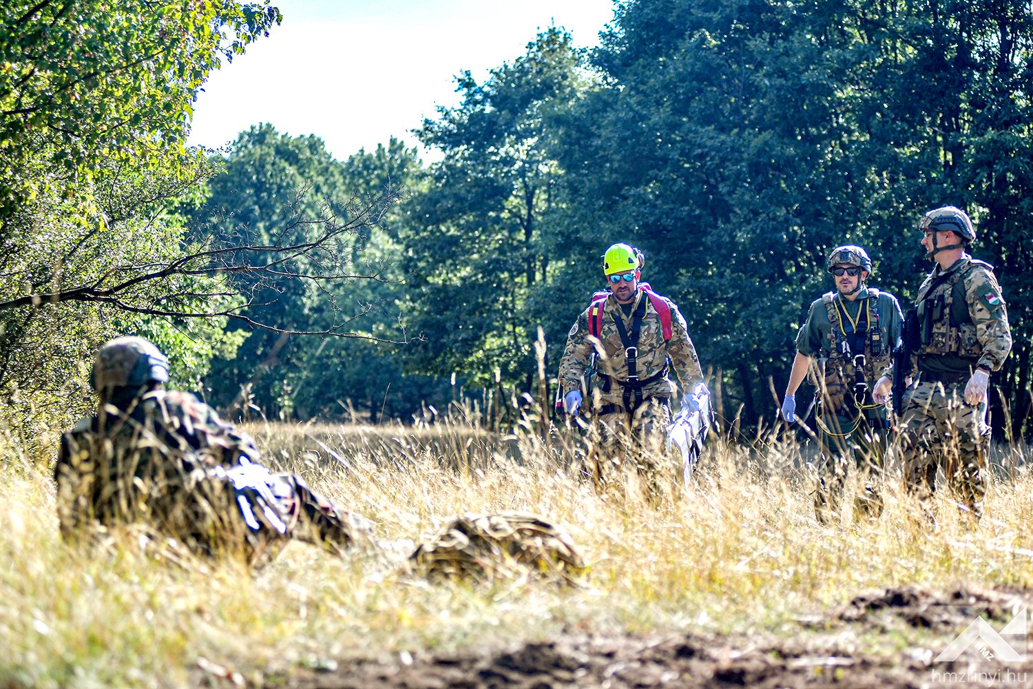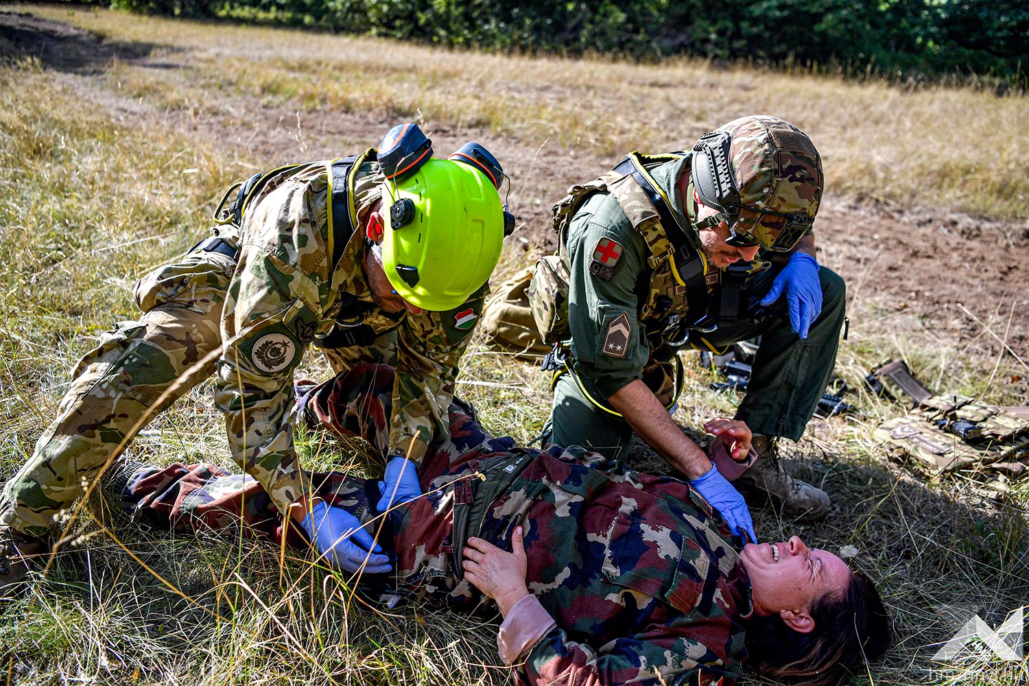 „Amint telefonos riasztás érkezik, azonnal felszáll a gép és megkezdi a kárhelyszín felkutatását” – mondta Daróczi alezredes. Az egészségügyi szakállomány – az ejtőernyős ugrások és csörlési feladatai mellett – a felkutatott kárhelyszíneken látott el szimulált-preparált sebesülésekkel rendelkező sérülteket. Az egyik helyzetgyakorlat szerint olyan felderítőjárőrt kerestek, aki erdős-sziklás terepen, lezuhant drón keresése közben sérült meg.