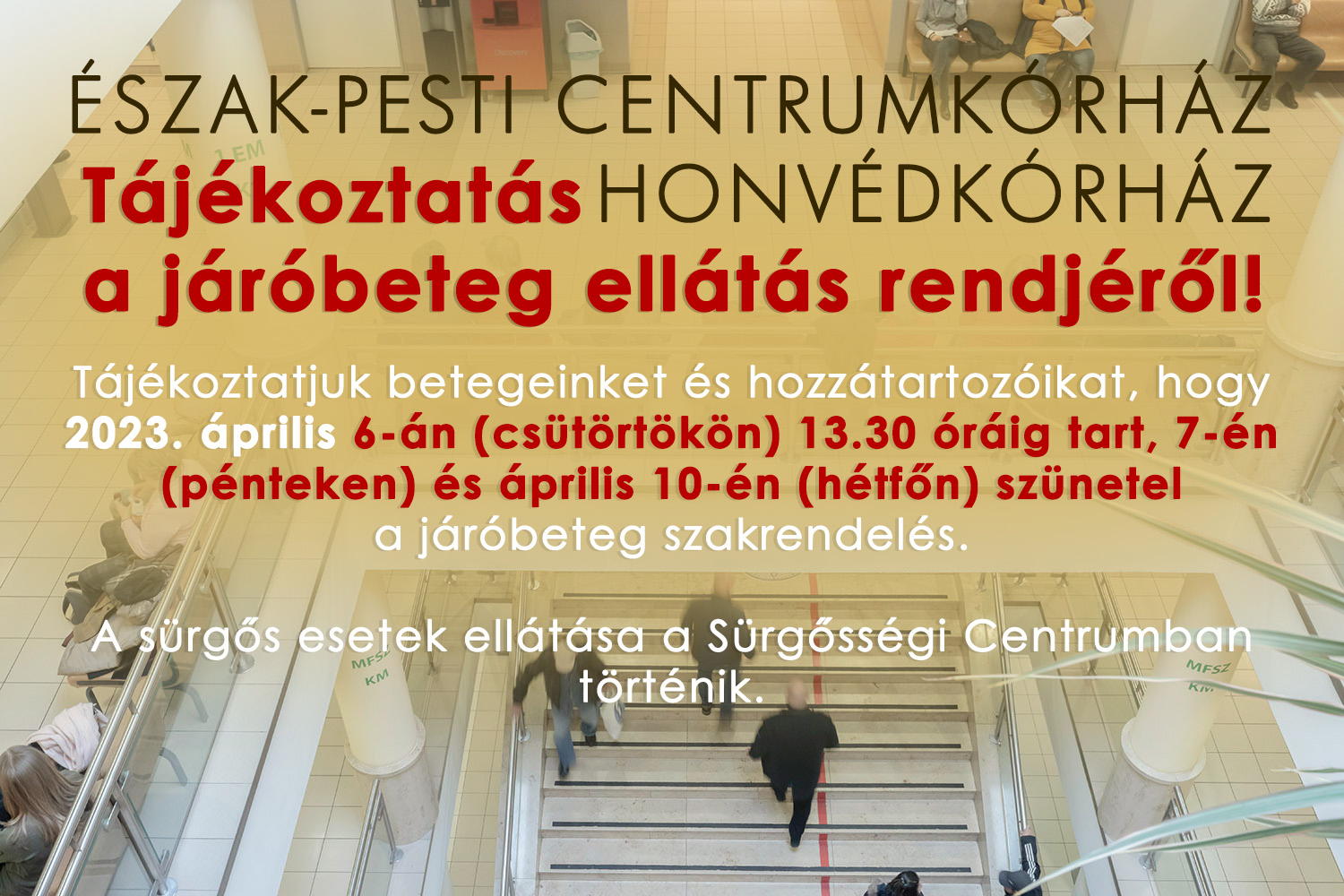 A húsvéti ünnepek miatt változás a Járóbeteg Szakrendelő rendjében!