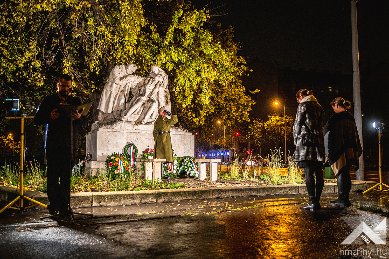 Katonai tiszteletadással emlékeztek a hősi halált halt orvosokra Budapesten, a Ludovika tér mellett található Magyar Hősi Halott Orvosok emlékműnél, november 4-én, pénteken.