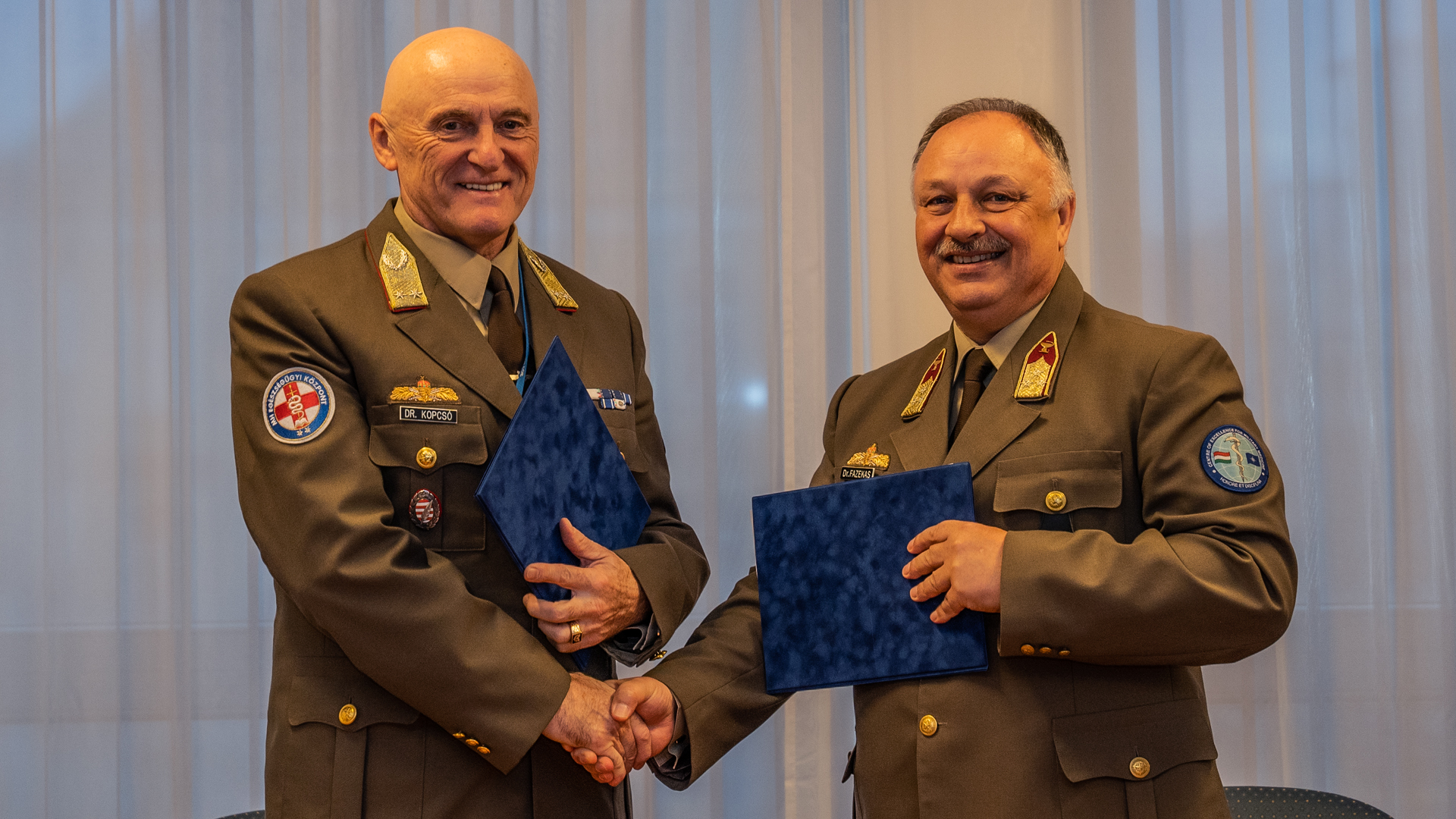 Szerző: nato kekk | 2022. november 25., péntek 10:52Dr. Kopcsó István vezérőrnagy, az MH Egészségügyi Központ parancsnoka (MH egészségügyi főnök) látogatást tett a NATO Katona-egészségügyi Kiválósági Központban, hogy együttműködési megállapodást írjanak alá Dr. Fazekas László ezredessel – a NATO KEKK igazgatójával - a két szervezet között.