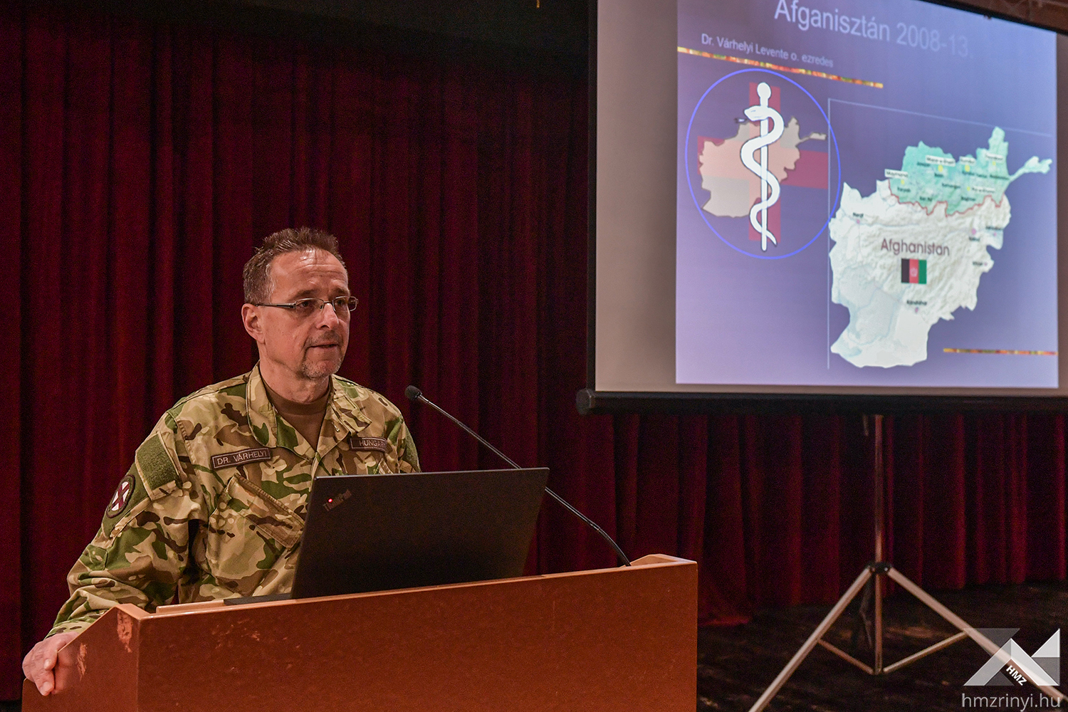 Szerző: Petróczy Levente | Fotó: Rácz Tünde, Kertész László |  2026. február 21., szombat 13:23Dr. Várhelyi Levente PhD ezredes 2008 és 2013 között négy alkalommal szolgált Afganisztánban, legutolsó kiküldetésén kórházparancsnok volt a Mazár-e Sarifban felállított katonai kórházban. A Magyar Honvédség Egészségügyi Központ főorvosa, egyben az Észak-Pesti Centrumkórház - Honvédkórház Baleseti Sebészeti Osztály főorvosa nemcsak afganisztáni, hanem a 2023. februárjában történt törökországi földrengés során végzett életmentő tevékenységeiről is mesélt a Bakancslista – Háború egy orvos szemszögéből című előadásán a Stefánia Palota – Honvéd Kulturális Központban, február 11-én.