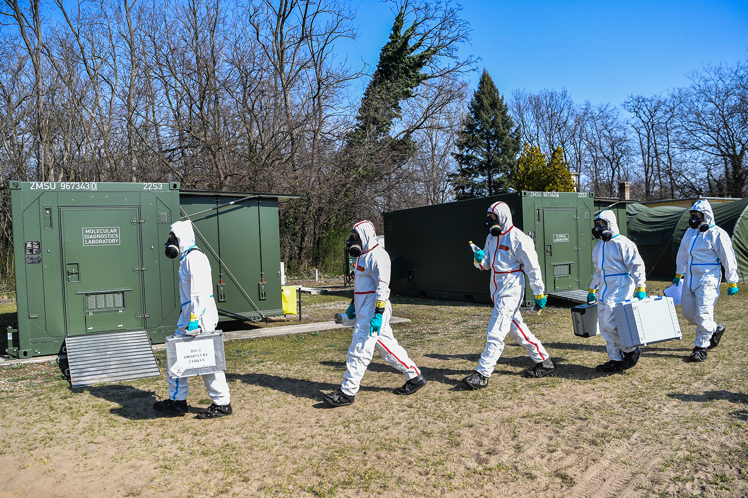„Van, hogy klinikai mintákat dolgozunk fel, majd a külső beavatkozás megkívánja a környezeti minták azonosítását is. Élelmiszerekből és vízből kinyert anyagokat szintén elemzünk” – mondta Pereszlényi alezredes az MH EK két laboratóriumi konténere kapcsán. „A kórokozók veszélyességük alapján négy kategóriába sorolhatók. A jelenlegi struktúrában a BSL–2 szintbe tartozó ágensek teljeskörűen és biztonságosan vizsgálhatók, ugyanakkor magasabb kockázatú események esetén a fenyegetettséghez igazodó, magasabb biológiai biztonsági szintű telepíthető képességek is alkalmazhatók”.