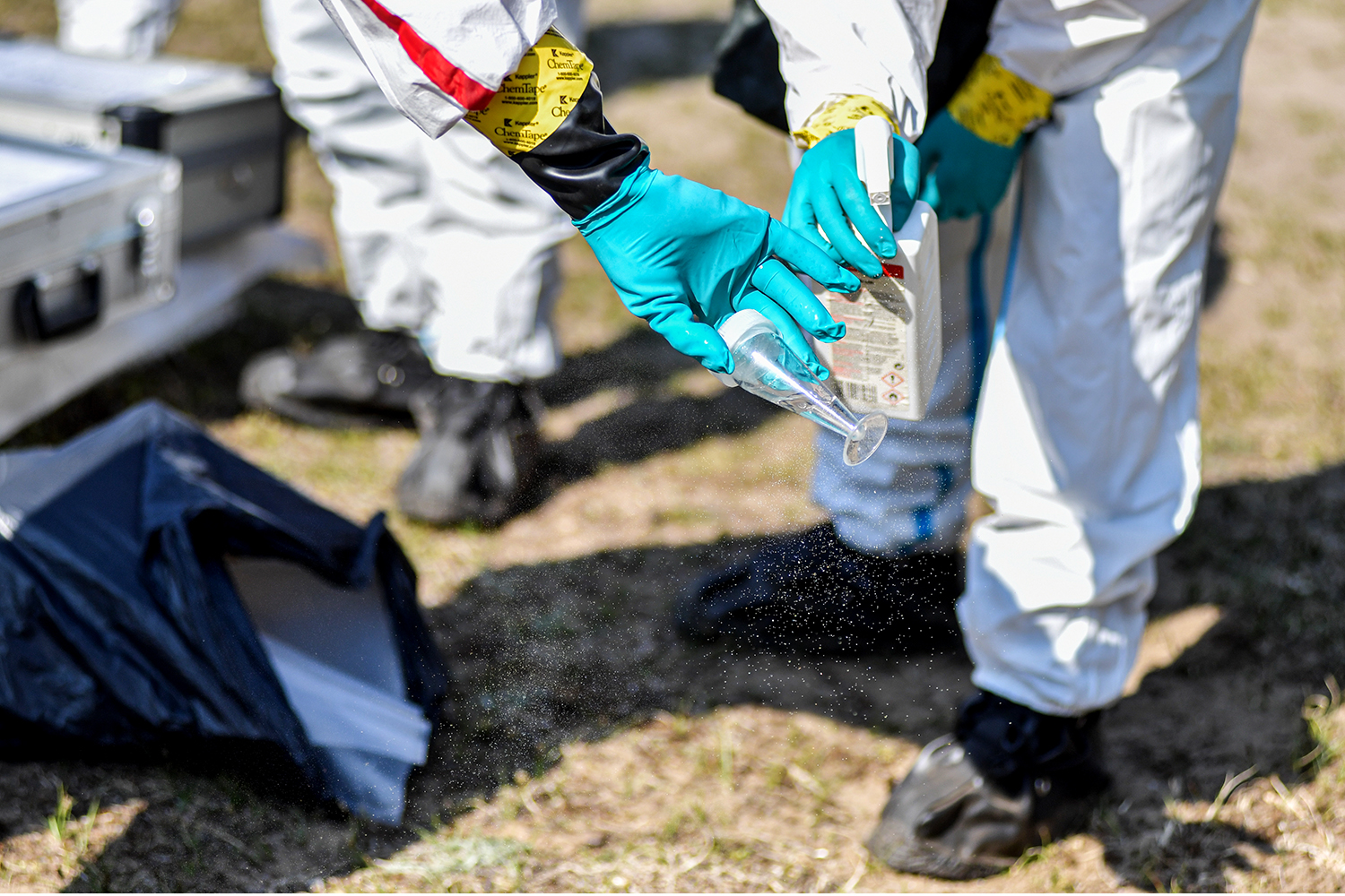 A csoport feladata azonban nem ért véget a mintavétellel, hívta fel a figyelmet rá a telepíthető képesség mintavevő tisztje. A mentesítő állomásra visszatérve különböző folyékony anyagokkal fertőtlenítették az állományt. „A fertőtlenítő anyagok úgynevezett behatási idejének lejárta után vehetjük le védőruhánkat és távozhatunk az állomásról. Biológiai anyagoknak ellenálló, ám egyszer használatos könnyűruházatról van szó, amit később megsemmisítenek. Ez alól kivételt képez a szintén biovédelmet biztosító gázálarc” – mondta a nemzetközi gyakorlatra készülő Szilágyi főhadnagy.