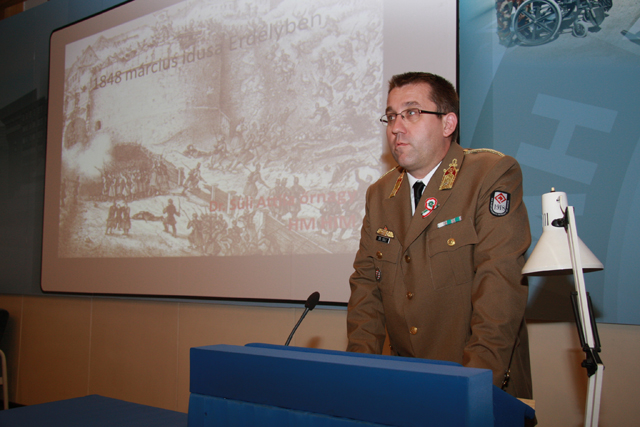A szabadságharc kiemelkedő vezetőinek, hétköznapi tanúinak, polgárainak, katonáinak, emlékét idézte fel az ünnepi állománygyűlésen megjelentek részére a HM Hadtörténeti Intézet és Múzeum hadtörténésze Dr. Süli Attila őrnagy. Ünnepi beszédében a kor leírásai alapján bemutatta, hogy a Kárpát-medence magyarsága számára a március 1848-ban mit jelentett, végül arra kérte a jelenlévőket, hogy a magasztos emlékek tükrében adózzanak e nevezetes nap szellemiségének.
