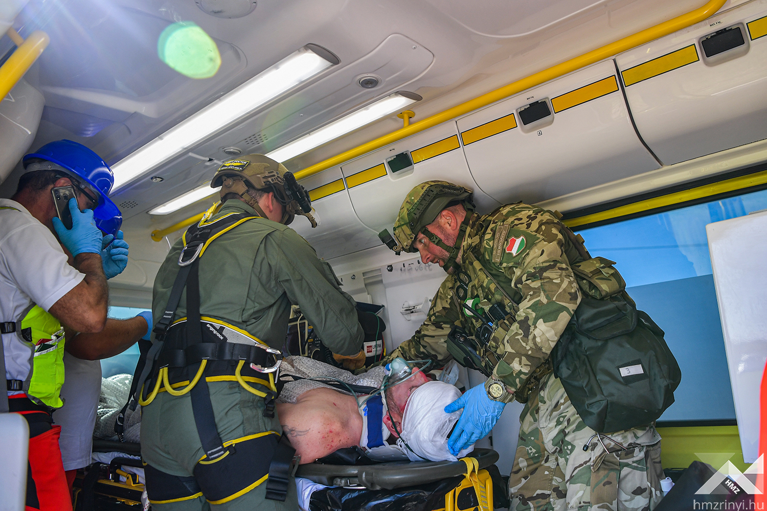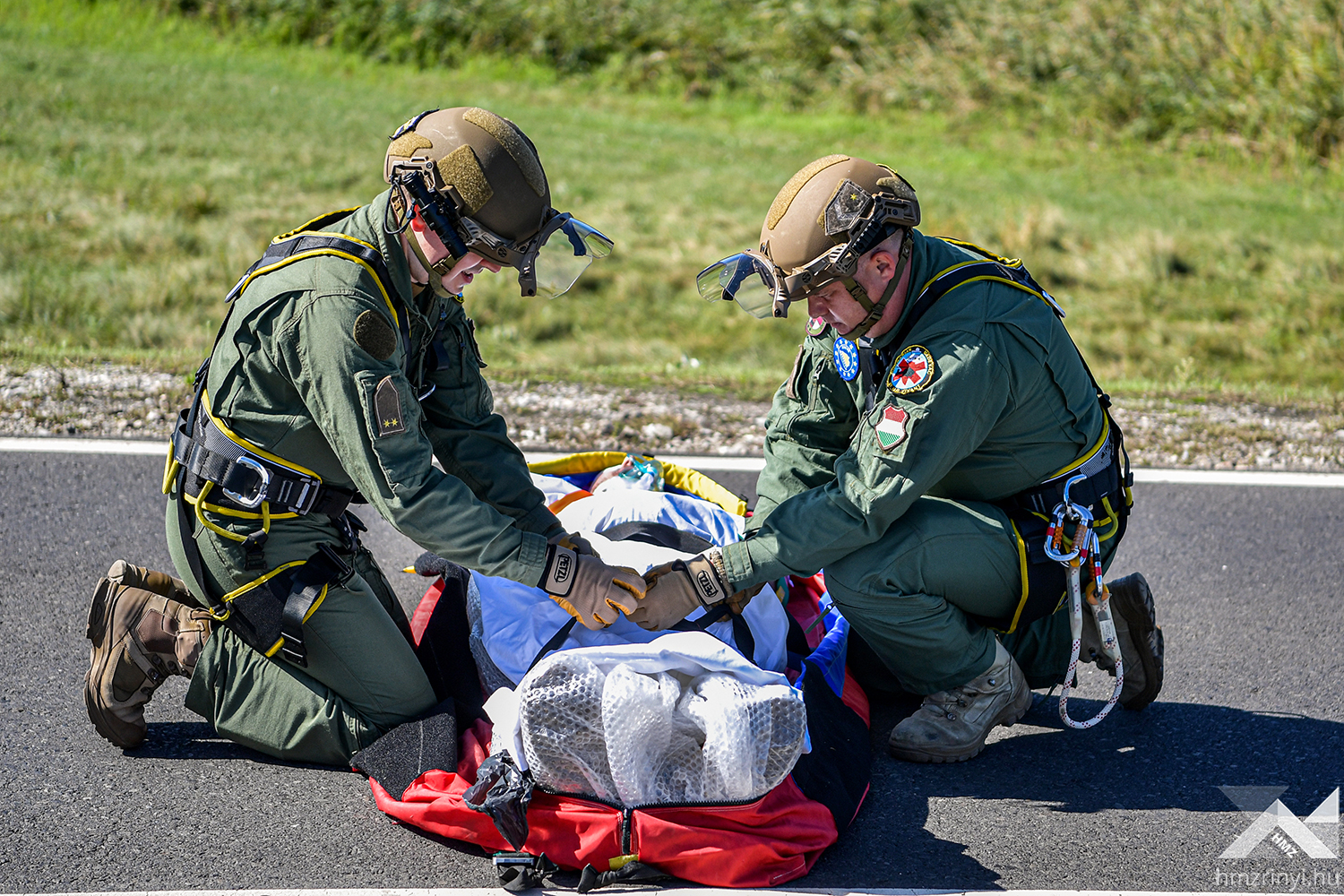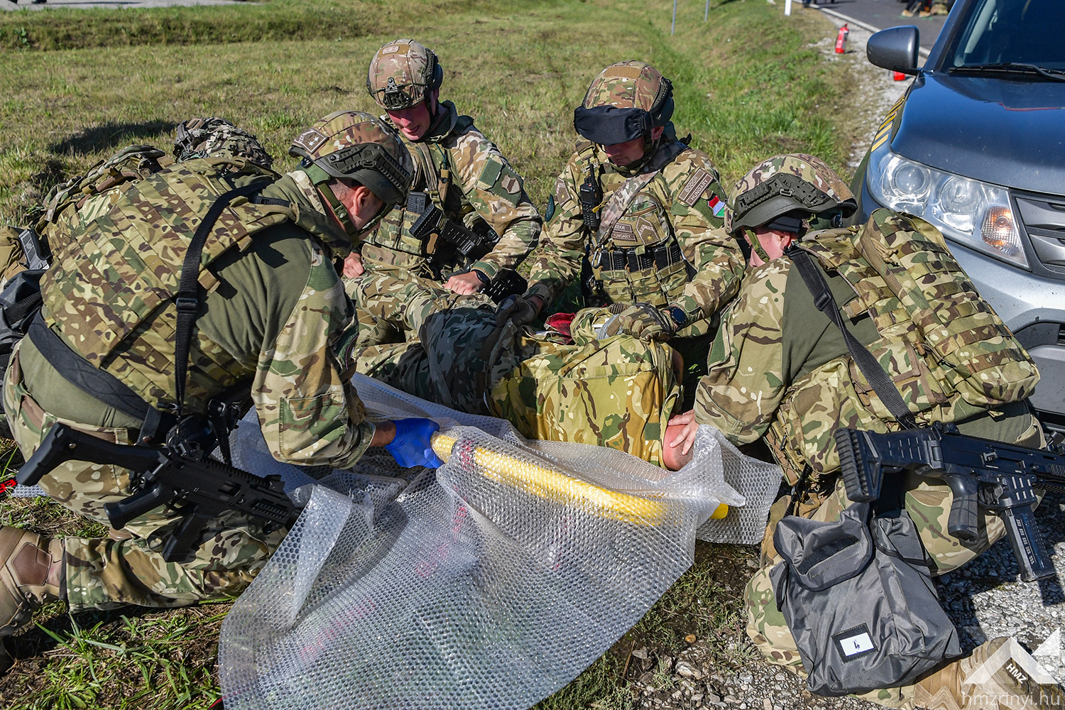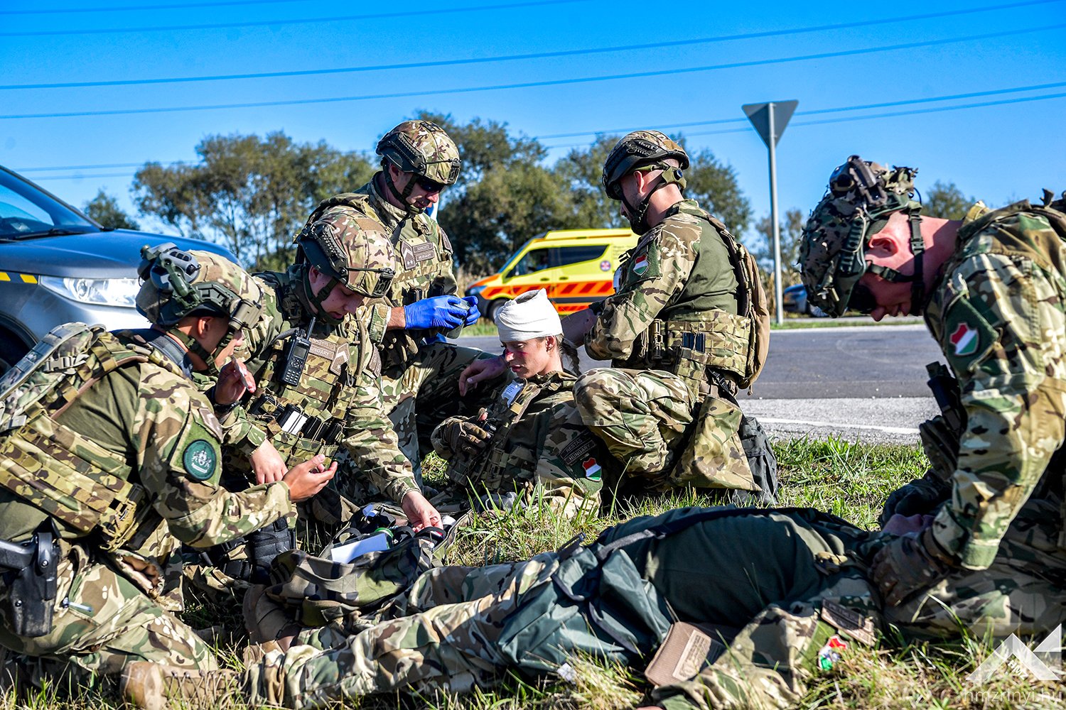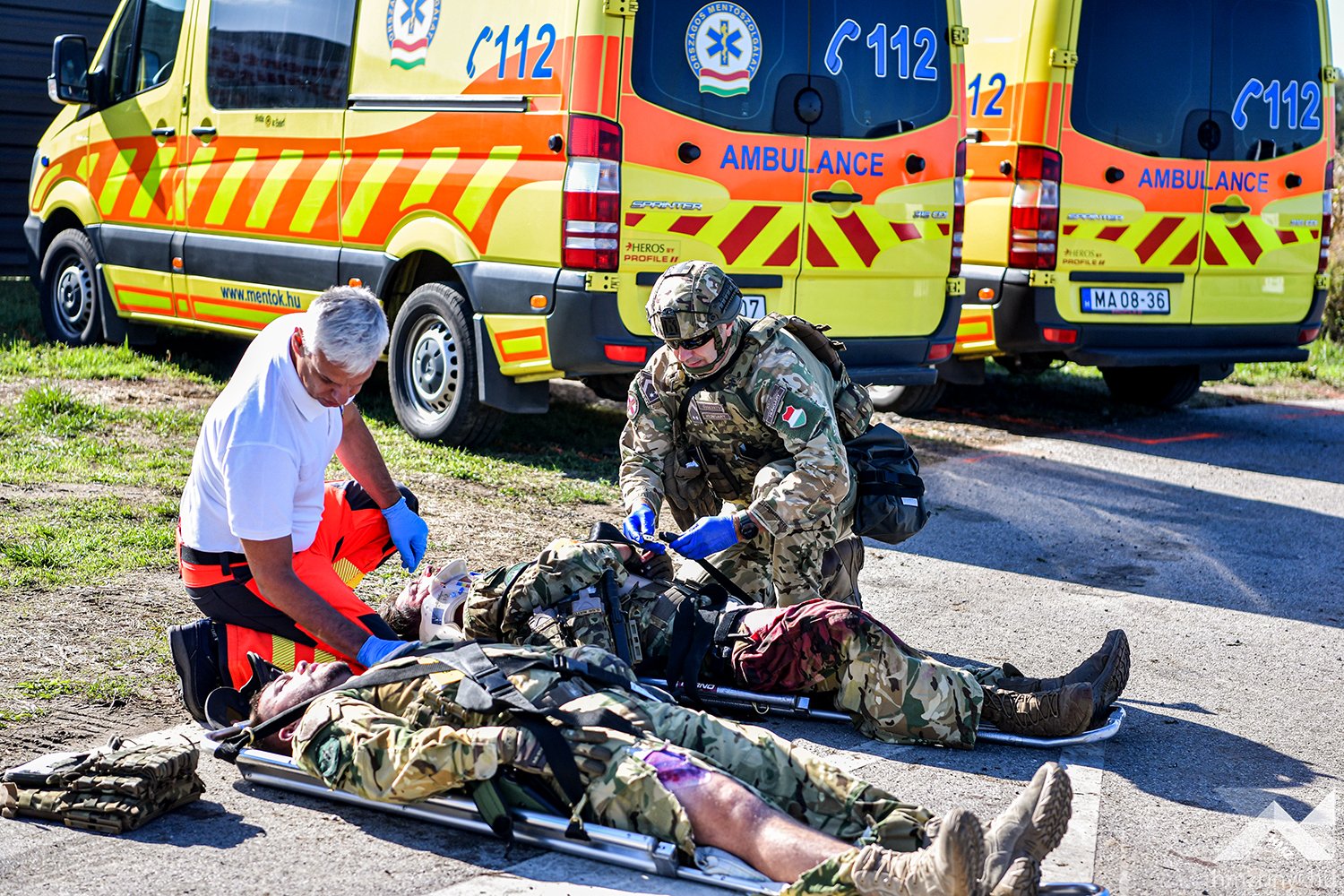 A szimulált balesetet követő első mozzanatként az MH Egészségügyi Központ egészségügyi katonái elkezdték a betegek triázsolását, majd kijelölték a könnyű sérültek ellátására szolgáló helyet. Az ő ellátásukat a harctéri elsősegélynyújtó képzéssel rendelkező katonák végezték, így az egészségügyi állomány a súlyos és életveszélyes sérüléseket „szenvedettek” ellátására fókuszálhattak. A speciális helyzet minden érintett szakterületet megmozgatott, hiszen a gyakorlat forgatókönyve szerinti az imitált baleset azonnali környezeti és közbiztonsági kockázatot teremtett. Az Országos Mentőszolgálat megérkezése után a mentők átvették a sérülteket, miközben a Belügyminisztérium Katasztrófavédelmi Főigazgatóság szakemberei elkezdték a kigyulladt gépjármű oltását és a sérültek kimenekítését a roncsok közül. Mindeközben a Rendőrség biztosította a területet, az Országos Vízügyi Főigazgatóság szakemberei pedig a környezeti károkat hárították el.