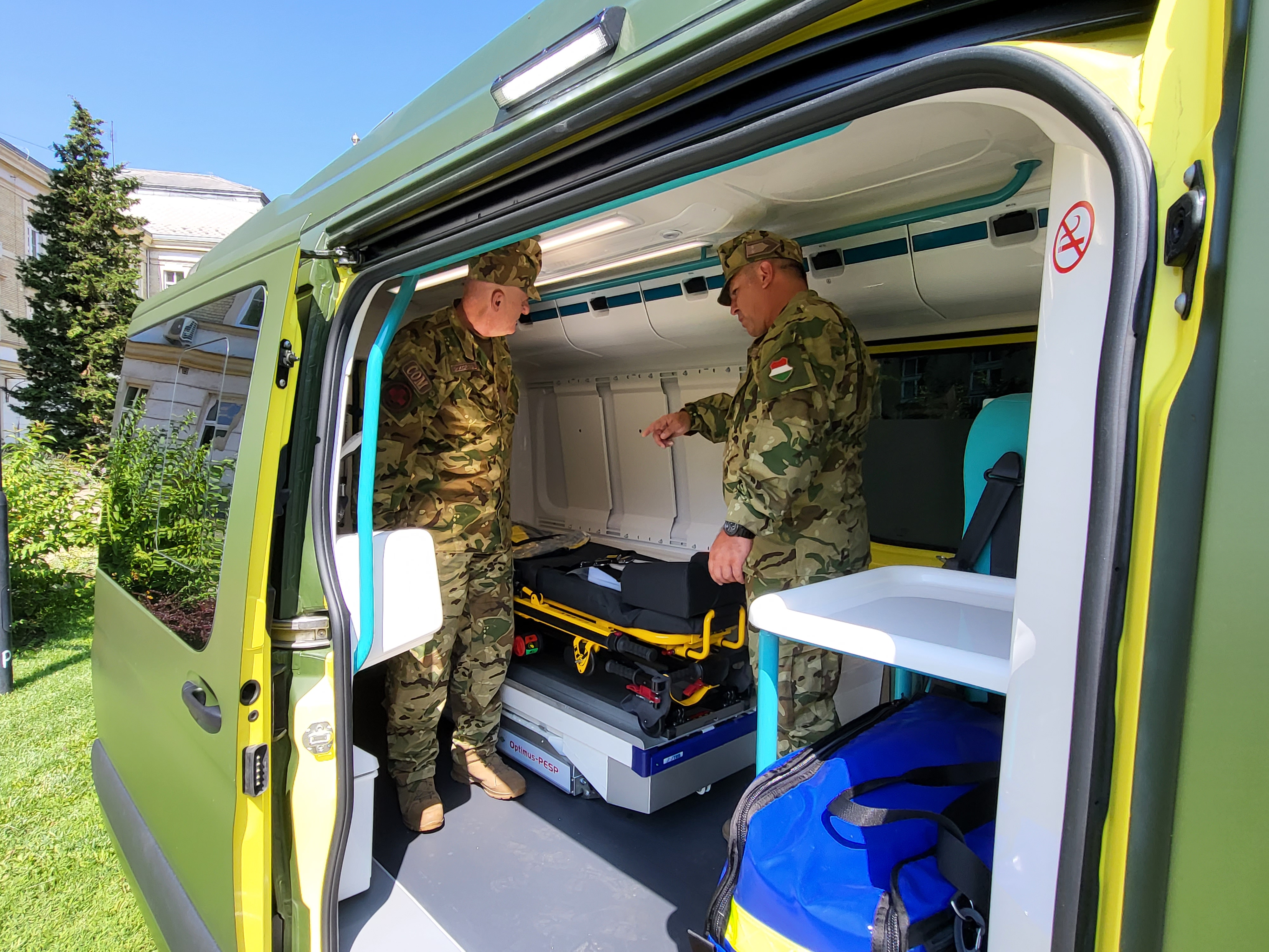 Szerző: MH Egészségügyi Központ | Fotó: MH Egészségügyi Központ |  2022. augusztus 9., kedd 15:484 darab sebesültszállító mentővel gazdagodott az MH Egészségügyi Központ, amelyeket Dr. Kopcsó István vezérőrnagy, az MH EK parancsnoka (MH egészségügyi főnök), Kerekes Etelka parancsnok gazdasági helyettes (gazdasági főigazgató) és Dr. Pusztai Erzsébet ezredes, Csapat- és Foglalkozás-egészségügyi Intézet, intézetvezető tekintett meg rendszerbe állítás előtt, 2022. augusztus 09-én az intézmény székhelyén.