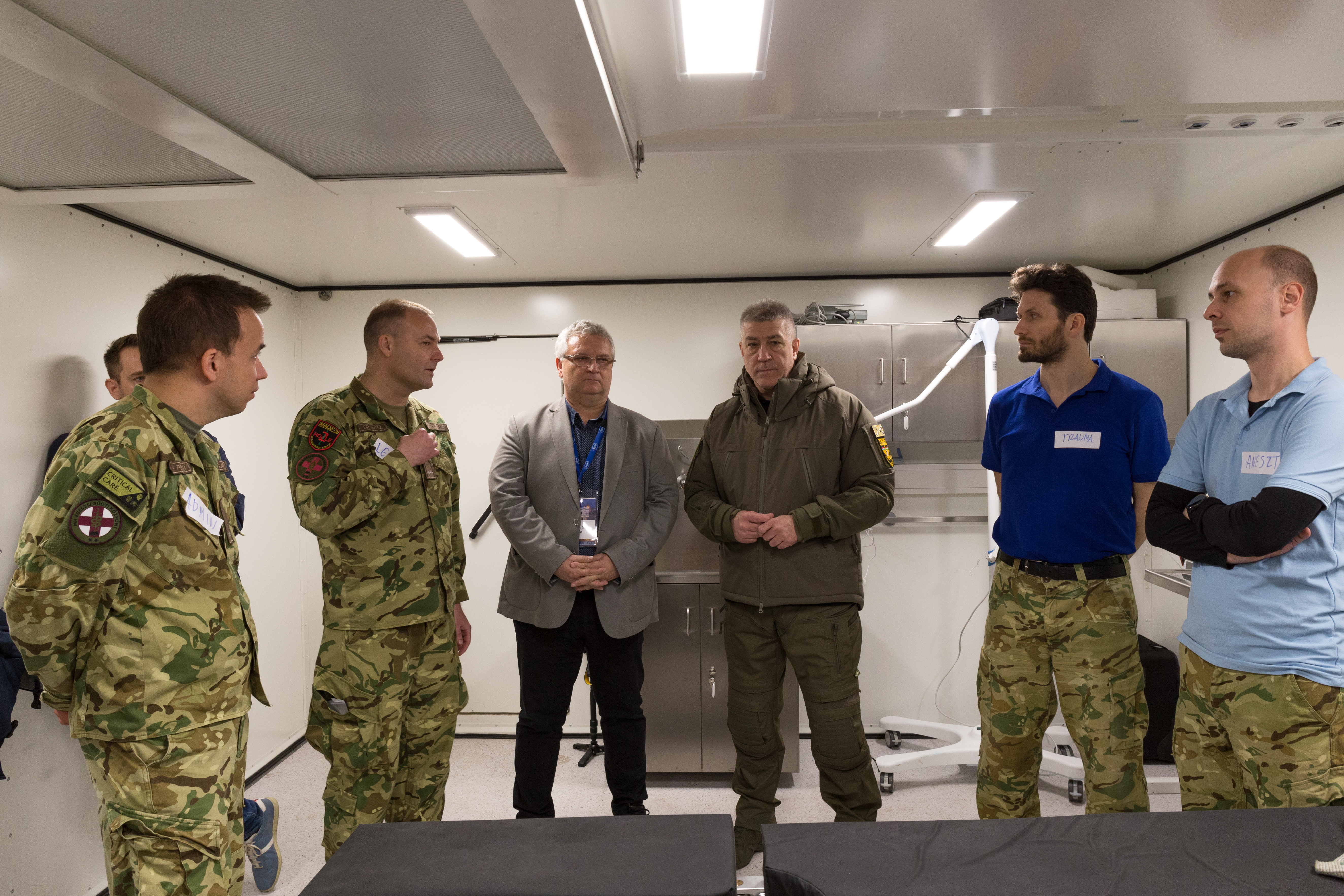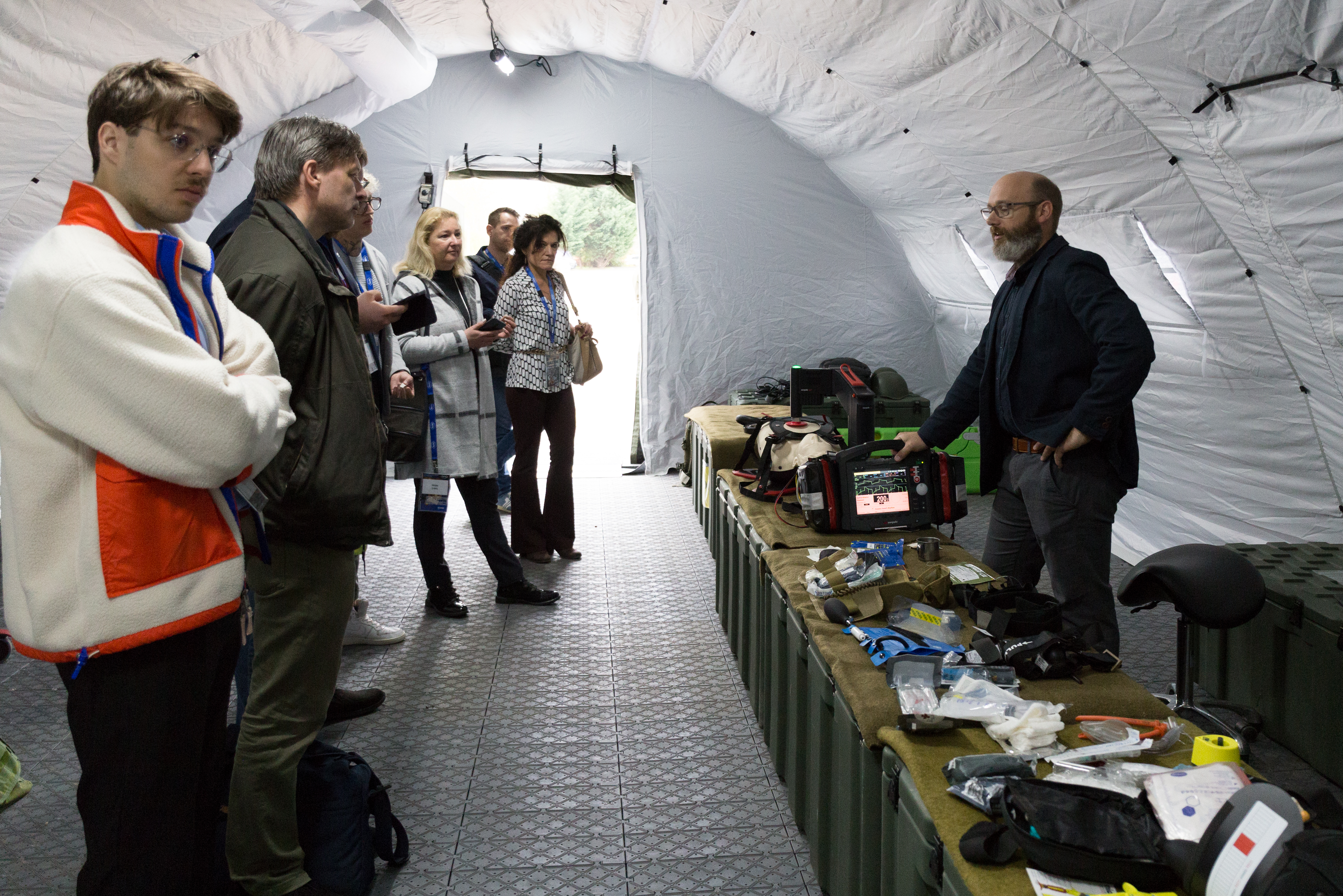 A konferencia második napján az érdeklődők Role 2 képességünk működését a helyszínen felállított sokktalanító konténerben tekinthették meg, ahol a Semmelweis Szimulációs Központ instruktorainak közreműködésével, Dr. Orosz Ferenc alezredes vezetésével a sérült/betegellátás harctéri körülmények közötti folyamata kerül demonstrálásra és begyakorlásra. A Szimulációs Központ és az MH EK közötti együttműködés részeként a jövőben további felkészítési programok is megvalósulhatnak a katonaorvosi, rendőrorvosi és katasztrófaorvosi ellátási feladatokra.
