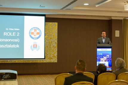 Péter főorvos úr előadásában bemutatta a Magyar Honvédség egészségügyi szolgálatát, ismertette a katonaorvosi pálya különlegességeit és kihívásait, valamint felvázolta azokat a fejlesztési irányokat, amelyek pozitívan befolyásolhatják a fiatal orvoskollégák katonai pálya iránti érdeklődését. A szekció előadásokat követően a résztvevők kerekasztal megbeszélésen egyeztettek a képzési, ellátási és szervezési feladatok aktuális kihívásairól.