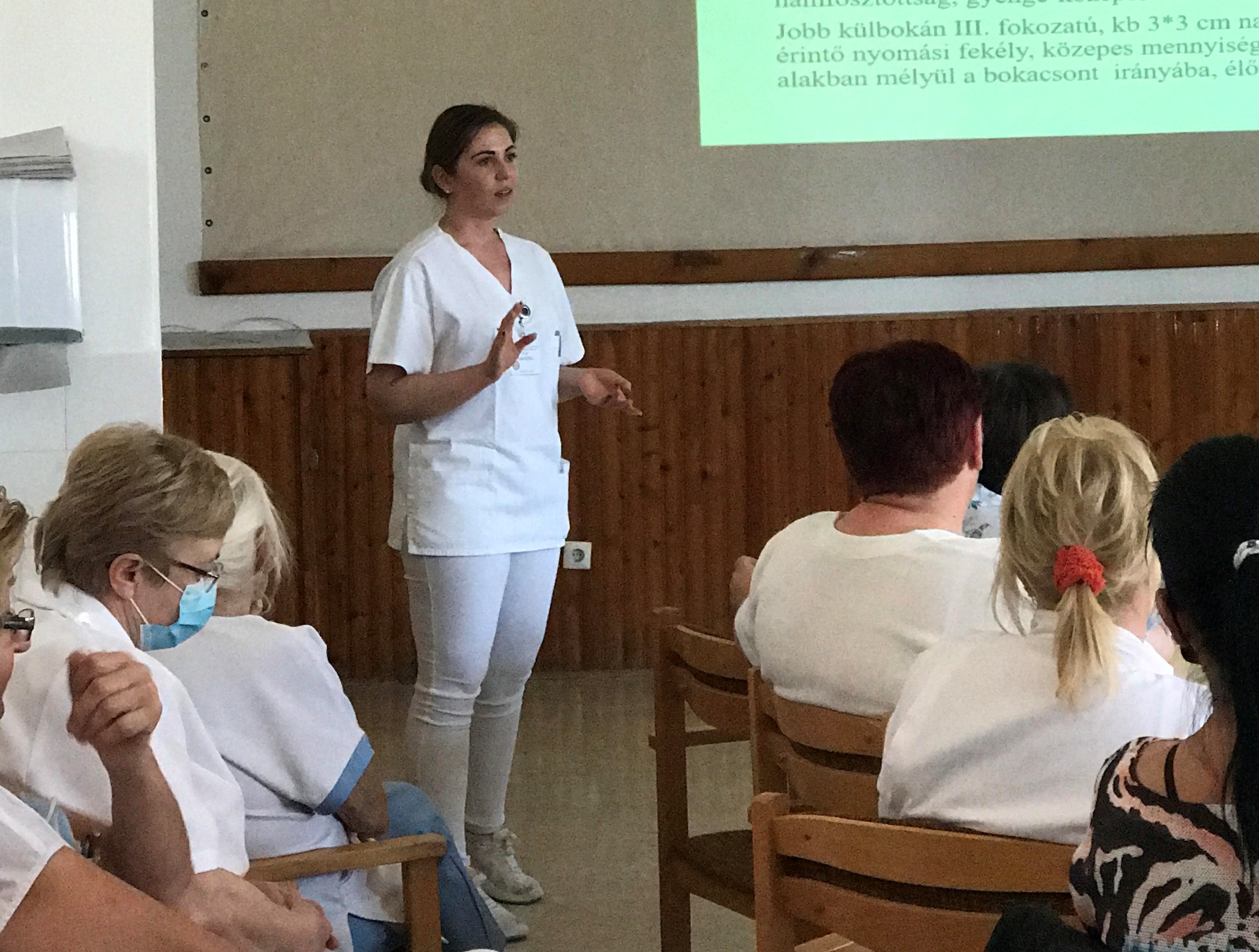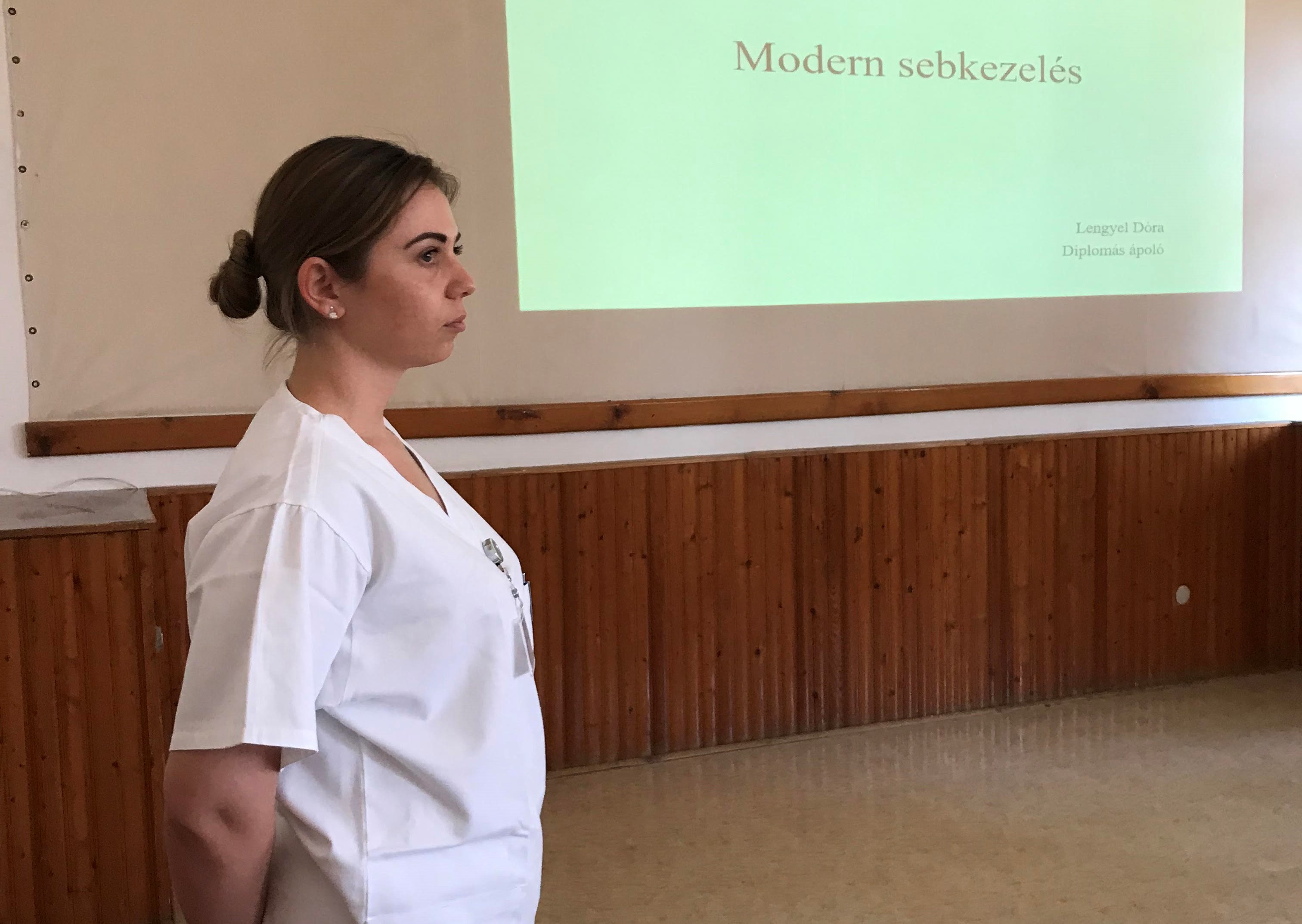 A betegellátás színvonalának javítása érdekében szervezett fórumon Lengyel Dóra bemutatta a korszerű kötszereket, azok alkalmazási módszereit esettanulmányok szemléltetésével.
