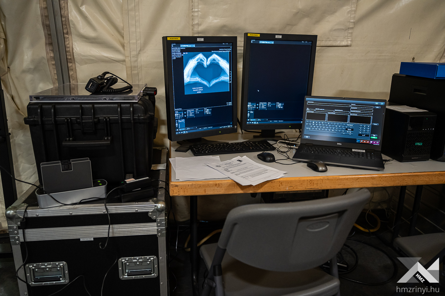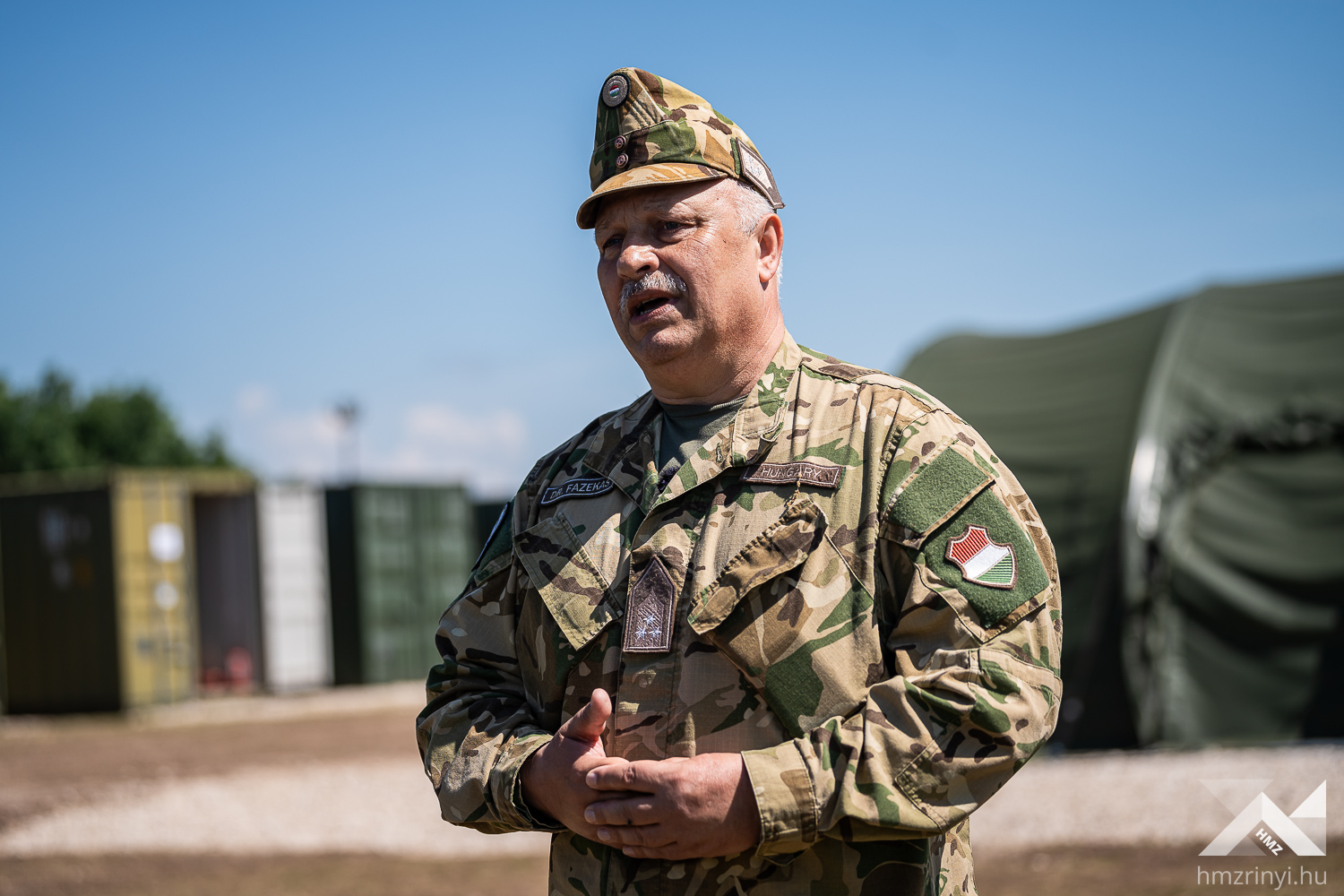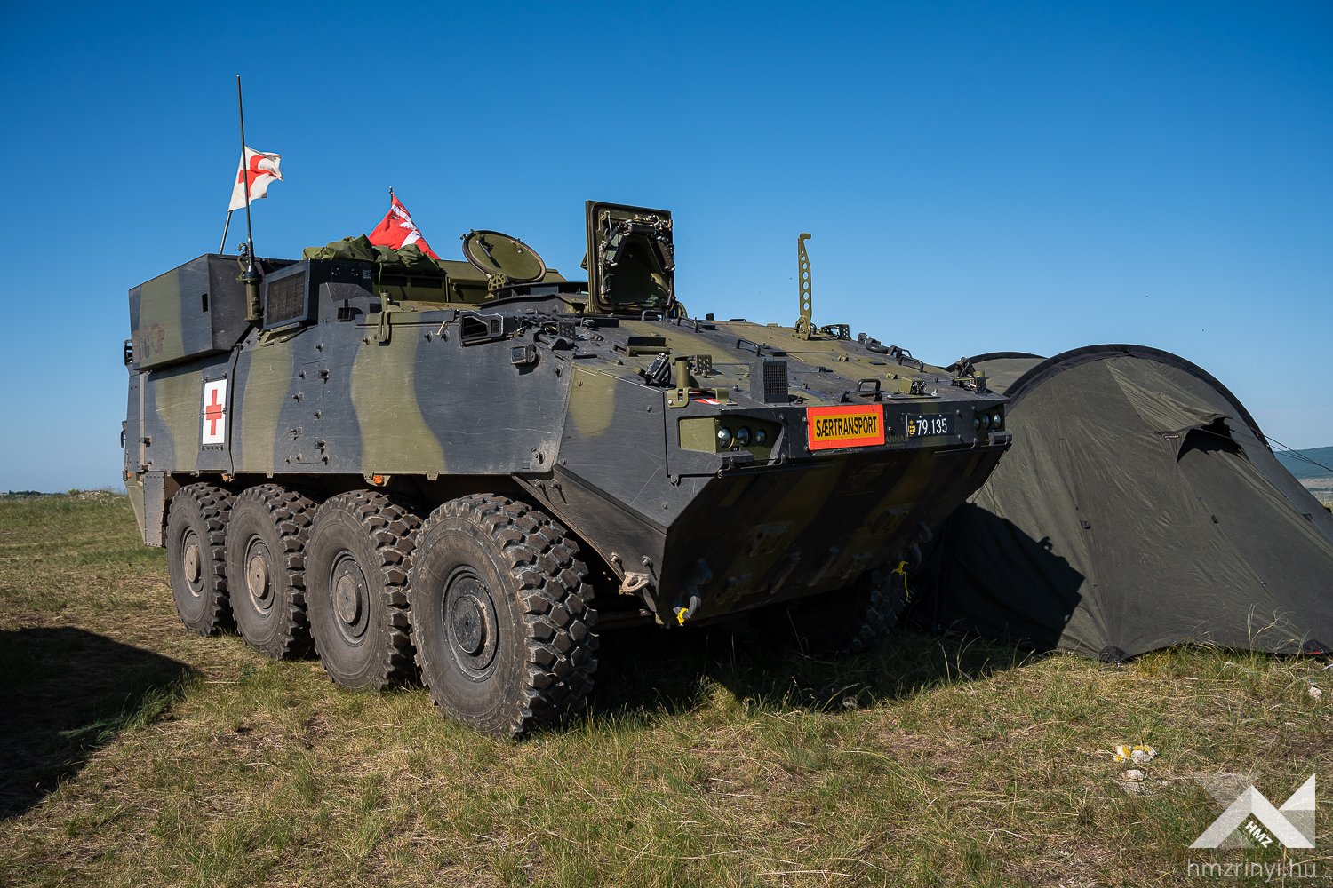 Szerző: Bányász Eszter | Fotó: Schöff Gergely |  2024. május 9., csütörtök 11:08Német elmaszkírozott sebesültekért száll fel a román mentőhelikopter. Fertőzés gyanúja áll fenn, így még nem landol az átalakított Black Hawk, mikor a brit dekontamináló század munkaállomása már áll – megfeszített munkával körülbelül tíz perc alatt húzták fel a sátraikat. Az ellenőrzés után belga mentőautóval szállítják a sérülteket az amerikai Role-2 sátorba. Ez a Vigorous Warrior 2024, a NATO egyetlen katona-egészségügyi gyakorlata.