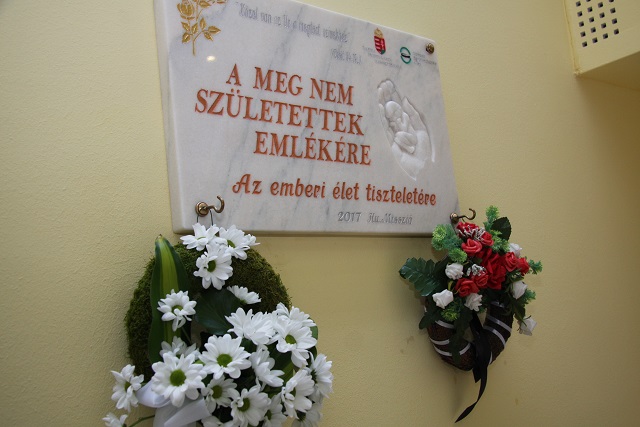 Emléktáblát helyezett el a Magyar Keresztény Misszió Alapítvány a meg nem születtek emlékére az MH Egészségügyi Központban 2017. március 24-én.
