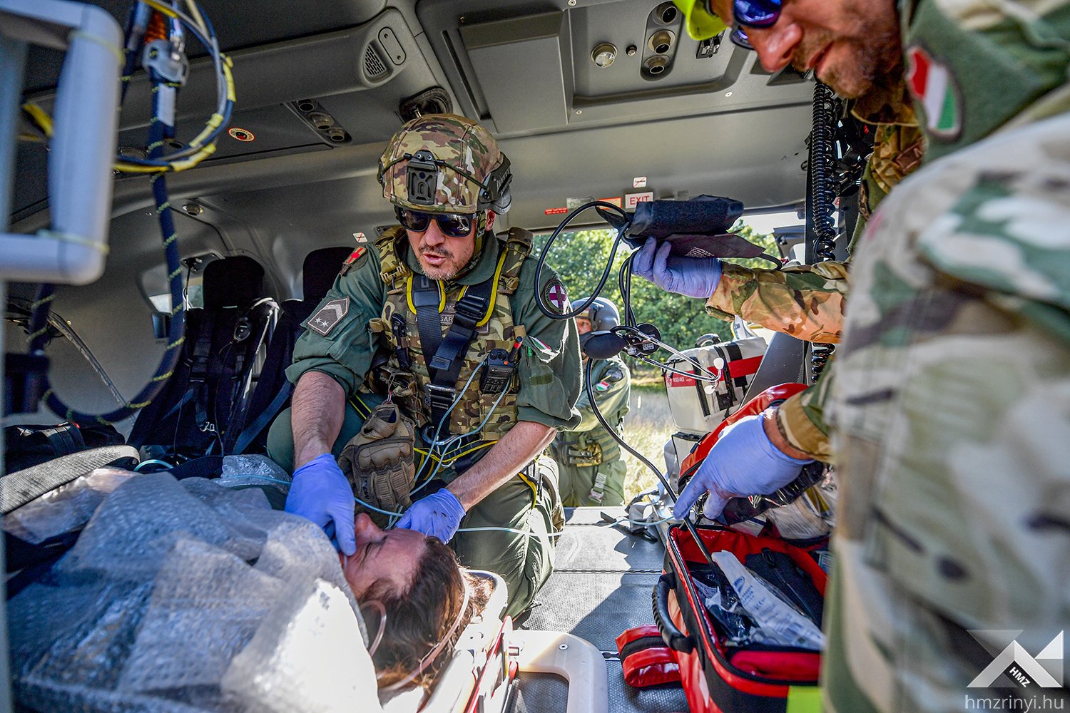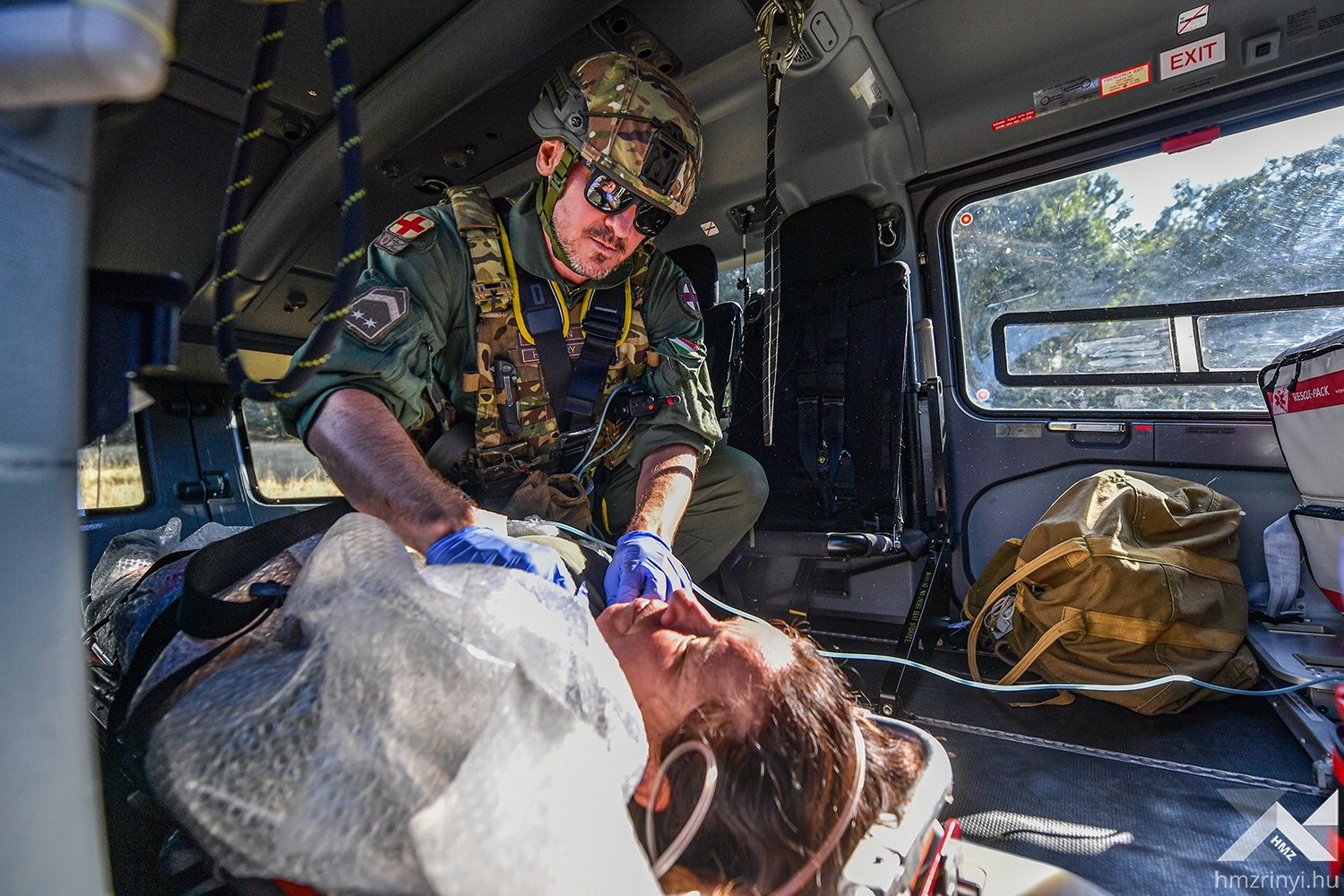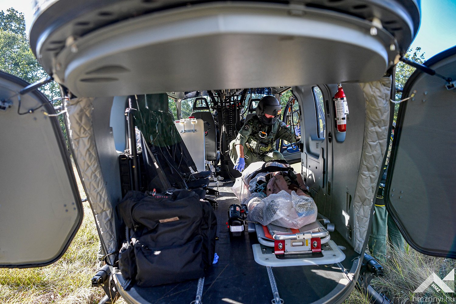 „Feltételezhető zavarás miatt nincs GPS-jel, a pontos kárhelyszínt a H145M típusú helikopter kutató-mentő állománya keresi. Mivel a sérült nem bír talpra állni, az adott ponton kell őt megfelelő eszközök híján ellátni. Vákuumsínt helyeznek a végtagra, hordágyra teszik és helikopterrel elszállítják” – ismertette a helyzetet az MH Egészségügyi Központ állományában szolgáló Bődi Norbert százados, a szolnoki dandár Egészségügyi Központjának parancsnoka.