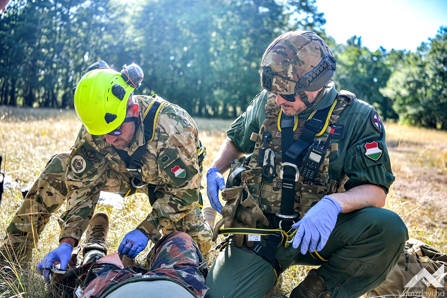 „Amint telefonos riasztás érkezik, azonnal felszáll a gép és megkezdi a kárhelyszín felkutatását” – mondta Daróczi alezredes. Az egészségügyi szakállomány – az ejtőernyős ugrások és csörlési feladatai mellett – a felkutatott kárhelyszíneken látott el szimulált-preparált sebesülésekkel rendelkező sérülteket. Az egyik helyzetgyakorlat szerint olyan felderítőjárőrt kerestek, aki erdős-sziklás terepen, lezuhant drón keresése közben sérült meg.
